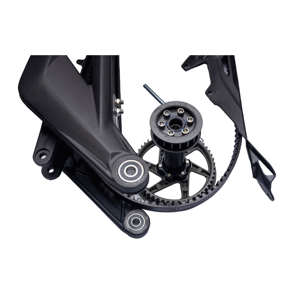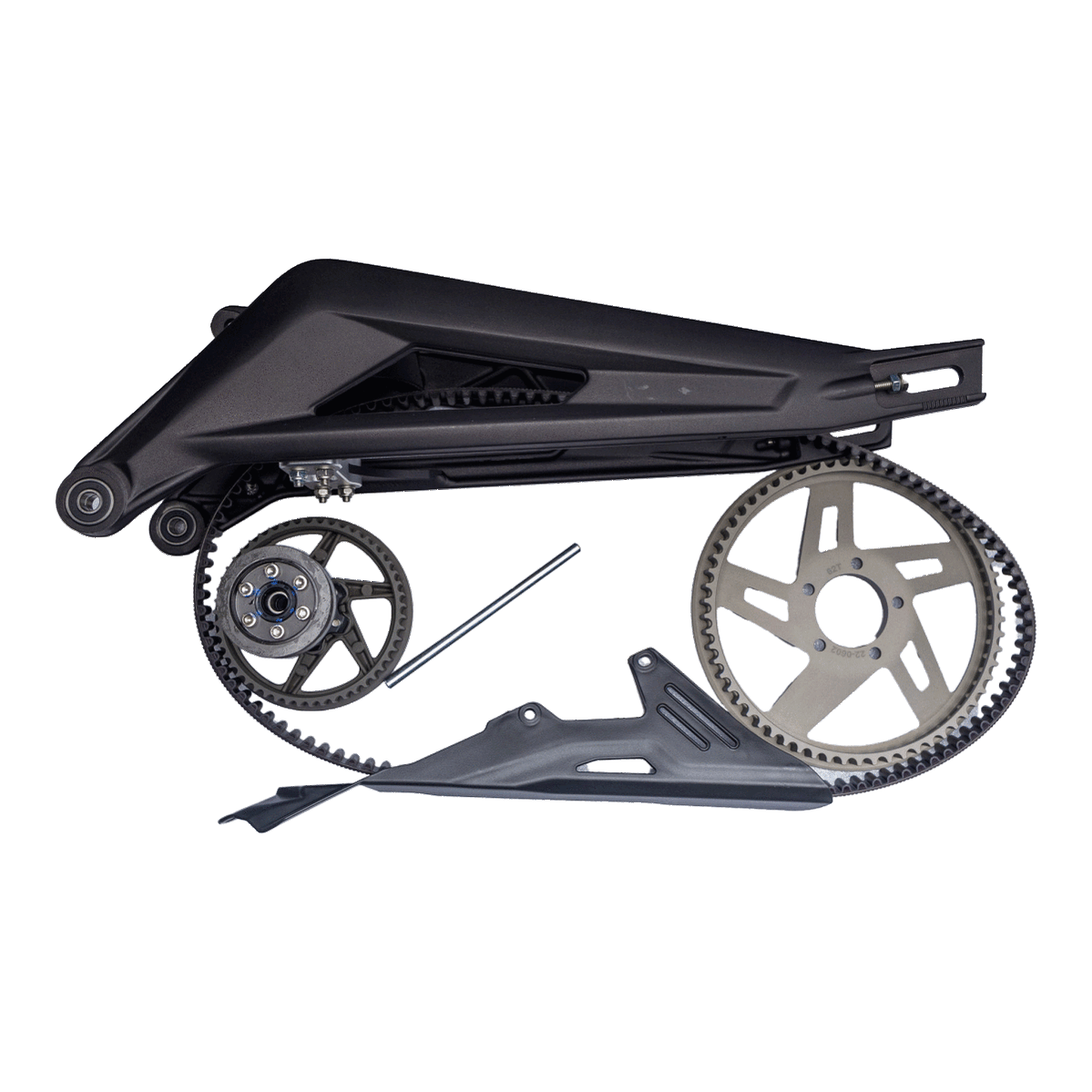 Complete swingarm with installed Gates Moto X5 secondary belt