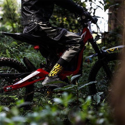 Power up your look with a 3-pack of yellow/black Surron socks.