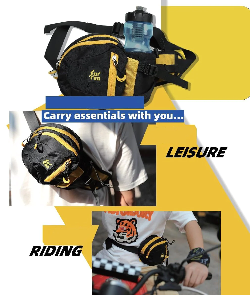 Carry water and other essentials in this light, convenient nylon bag. Features an open water bottle pocket with cinching pull tab, multiple zippered pockets, breathable padding and a strap for wearing around your waist or shoulder.
